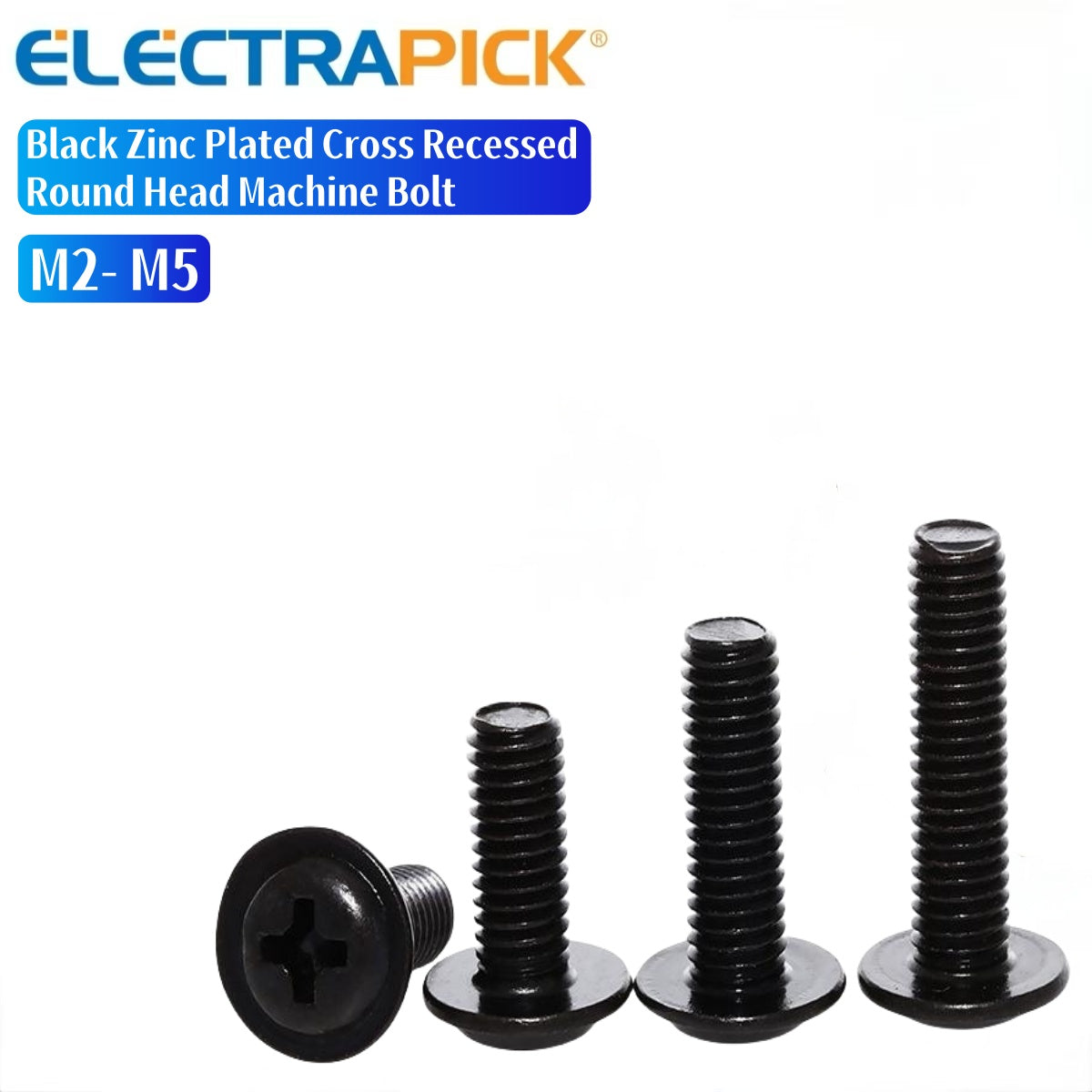 ELECTRAPICK Black Zinc Plated Cross Recessed Round Head Machine Bolt