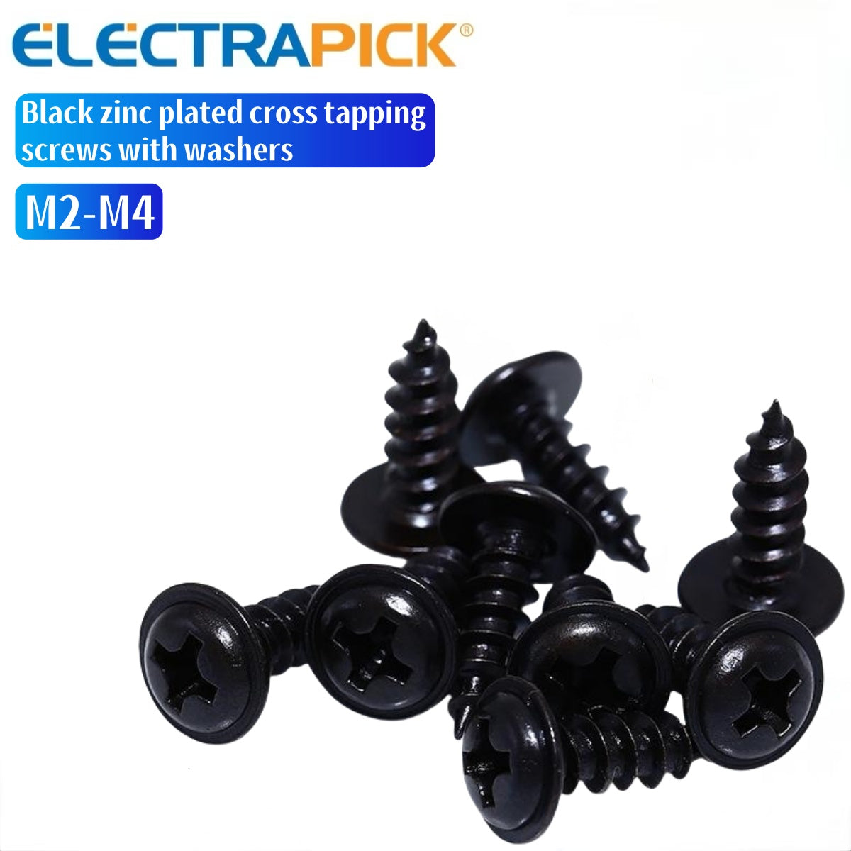 ELECTRAPICK Black zinc plated cross tapping screws with washers